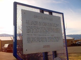 In 1917 State Senator William F. Dressler gave this 40-acre tract to Washo Indians, then living on ranches in Carson Valley. After a school was opened in 1924, it became a nucleus of settlement. Before the intrusion of Caucasians in 1848, Washo lived in winter in the Pinenut Hills where they stored autumn harvested pinenuts. In summer, they lived in the Lake Tahoe Basin fishing the tributary streams and gathering roots and berries. In fall, they hunted jackrabbits and gathered seeds in Carson Valley. Their only form of organization was that of kinship. These stone age people lived in daily communion with giants, monsters, animals whose characteristics were interchangeable with those of people, and with water babies, "having the bodies of old men and the long hair of girls," who lived in the lakes of the High Sierra. |