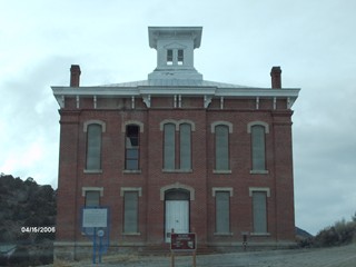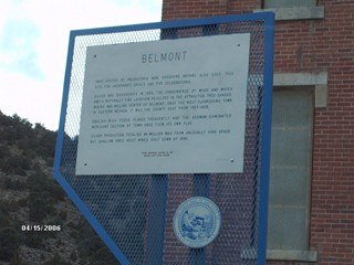 Once visited by prehistoric man, Shoshone Indians also used this site for jackrabbit drives and for celebrations. Silver ore discoveries in 1865, the convenience of wood and water and naturally fine location resulted in the attractive, tree-shaded mining and milling center of Belmont. Once the most flourishing town in eastern Nevada, it was the county seat from 1867-1905. English-Irish feuds flared frequently, and the German-dominated merchant section of town once flew its own flag. Silver production totaling $4 million was from unusually high-grade but shallow ores. Most mines shut down by 1890. |