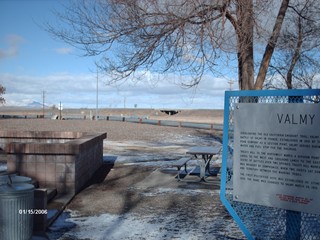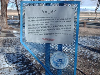Overlooking the old California Emigrant Trail, Valmy was named after the Battle of Valmy in France. Established in 1910 by the Southern Pacific Railroad Company as a section point, Valmy served during the steam era as a water and fuel stop for the railroad. Treaty Hill to the northwest marks a division point between the Paiute lands to the west and Shoshone lands to the east. For generations the scene of battles over two springs, Treaty Hill marks the site where peace was wrought by compromise, when two chiefs sat down and divided springs and territory between the warring tribes. The first post office here was established as Stonehouse on November 26, 1890. The name was changed to Valmy March 24, 1915. |