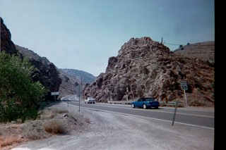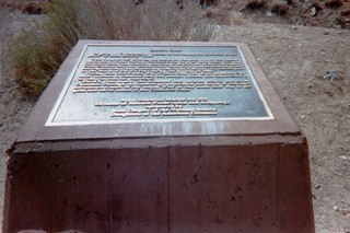It gives... "a forcible impression of the unhallowed character of the place," J. Ross Browne - 1860. This rugged reef of metamorphic rock was once one of the famous landmarks of the Nevada Territory. In June of 1850, John Orr and Nickolas Kelly unearthed a gold nugget nearby, the first ever found in Gold Canyon. For the next ten years, the canyon was the scene of placer mining and one of the first stamp mills in the Territory was erected just to the south of Devil's Gate during the summer of 1860. During the brief Paiute War, 1860, the people of Silver City built a stone battlement atop the eastern summit and constructed a wooden cannon for protection. Devil's Gate marks the boundary line between Storey and Lyon Counties. Through this narrow gorge paraded thousands of the most adventurous souls of the mining West as they made their way to the gold and silver mines of the Comstock Lode. |