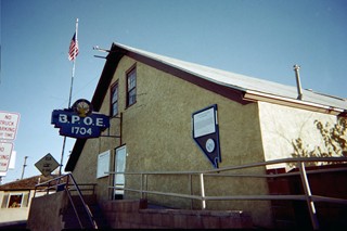 This building, the first to be constructed in Hawthorne, is the last remnant of the narrow-gauge Carson & Colorado Railroad built south from Moundhouse in 1881. Railroad officials created the town from barren desert when the first lots were auctioned off on April 14, 1881. The line was subsequently extended into Owens Valley, California, and service to Hawthorne came to an end when the town was bypassed in 1905. In later years, the building served as a general store, a bar, and restaurant with a bingo parlor and a banquet hall, until acquired by the Hawthorne Elks Lodge in 1946. |