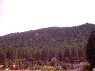 The scars on the mountain above are the remnants of the "Great Incline of the Sierra Nevada." Completed in 1880, this 4,000-foot long lift was constructed by the Sierra Nevada Wood and Lumber Company. A unique steam-powered cable railway carried cordwood and lumber up 1,800 feet to a V-flume which carried the lumber down to Washoe Valley where it was loaded on wagons for use in the mines of the Comstock. Driven by an engine on the summit, 8,000 continuous feet of wire cable, wrapped around massive bull wheels pulled canted cars up a double track tramline. This engineering feat would transport up to 300 cords a day from the mill located on what is now Mill Creek. |
