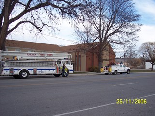 Notes on this marker: We got to watch the firemen put up Christmas decorations along this very quiet street. |