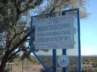 Established as Camp Halleck by Captain S.P. Smith July 26, 1867, to protect the California Emigrant Trail and construction work on the Central Pacific Railroad. The Camp was named for Major General Henry Wager Halleck, at that time Commander, Military Division of the Pacific. In May, 1968, it became headquarters for the Nevada Military District when Fort Churchill was abandoned. On April 5, 1879, it became Fort Halleck. The nine-square mile reservation was set aside October 11, 1881. The fort was a two-company post, with about 20 buildings of wood, adobe and stone construction, arranged around the side of a rectangular parade ground. Troops from the fort took no part in local Indian troubles. However, they saw action in February, 1873, against the Modoc Indians of northern California; against the Nez Perce uprising in Idaho in 1877; in 1878, against the Bannocks in Oregon; and against the Apaches in Arizona, 1883. The fort was closed December 1, 1886. |