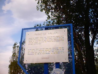 Hudson Bay Company's Peter Skeen Ogden passed through Paradise Valley November 8, 1828. First settled in 1863, Indian trouble starting in 1864, worsening in 1865, led to the establishment of Camp Winfield Scott (1866-1870) about four miles from here. Paradise Valley soon became the granary and fruit-raising center for the mining camps of central and eastern Nevada and those of southwest Idaho Territory. Scottsdale, named for the nearby Army Post, was established in 1866. It was renamed Paradise City in 1869. During the valley's period of mining activity (1878-1920), the community served as supply center for the small camps of Queen City, Spring City and Gouge-Eye. Today, livestock raising is the main activity. The town is now called simply Paradise Valley. |